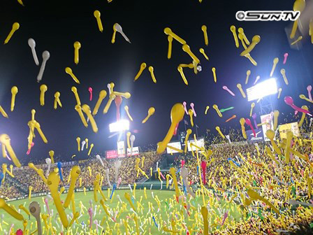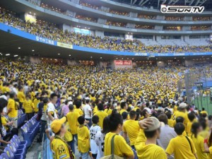 ときどき、「スタンドを黄色で埋め尽くそう」的なイベントがあって、そのたびに、古くは黄色のTシャツだったり、タオルだったり、最近はフラッグなんかが入場時に配られたりしますよね。