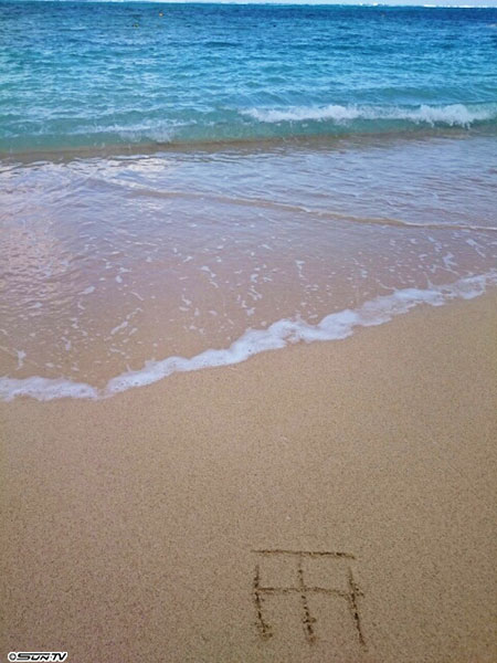 この最中に、波が足首までかかりました。