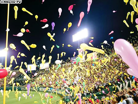 7回表の攻撃に備え、風船を持つホークスファンがなかなかその風船を離せない。気の毒だ。だがそれも経験だ。これに関してはタイガースファンだからこそ上から目線で言わせてもらう(笑)