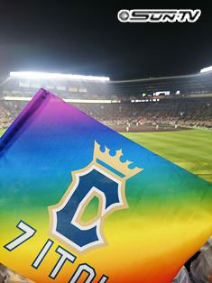 昨日、京セラドームを早退したみつくにさんから「まだ糸井の打席があるから」と、貴重なこのフラッグを私たちに預けられたんです。