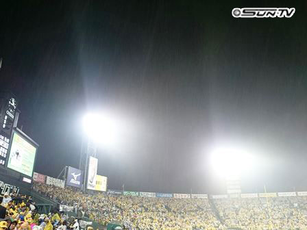 ジャイアンツが勝ちの継投に入った頃、それまで止んでいた雨が強くなりました。
