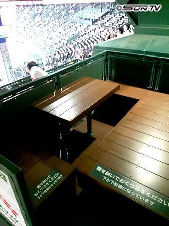 この座席が誕生した理由は、柱の陰になる空間の有効利用がそもそもだったと思うのですが、柱にモニターがつけられ、居酒屋さながらに、仲良しとリラックスしながら観戦できるということで、気にはなってたんですよ!