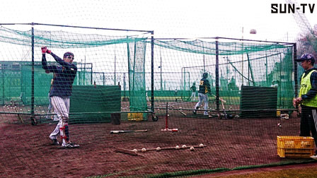 安芸につくと、目に飛び込んできたのは、横田がトスバッティングする姿。