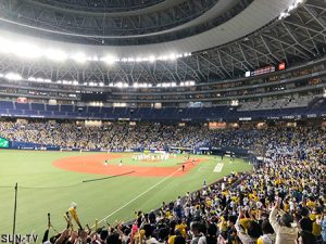 ボールは、外野の深いところで跳ね、原口の代走熊谷はホームベースを経由してから、歓喜の水軍団の後ろに合流した。