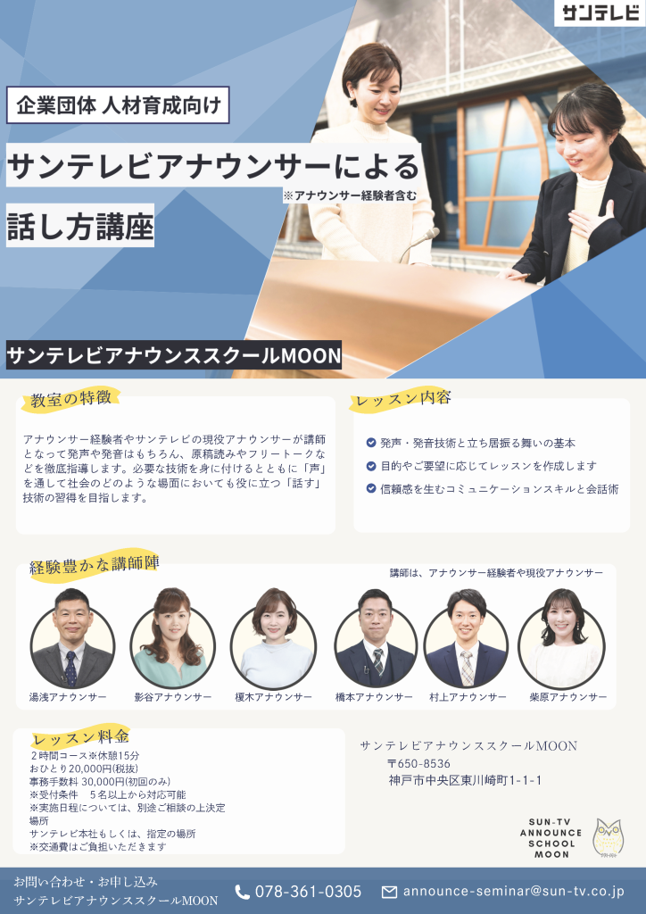 企業団体 人材育成向け サンテレビアナウンサーによる 話し方講座