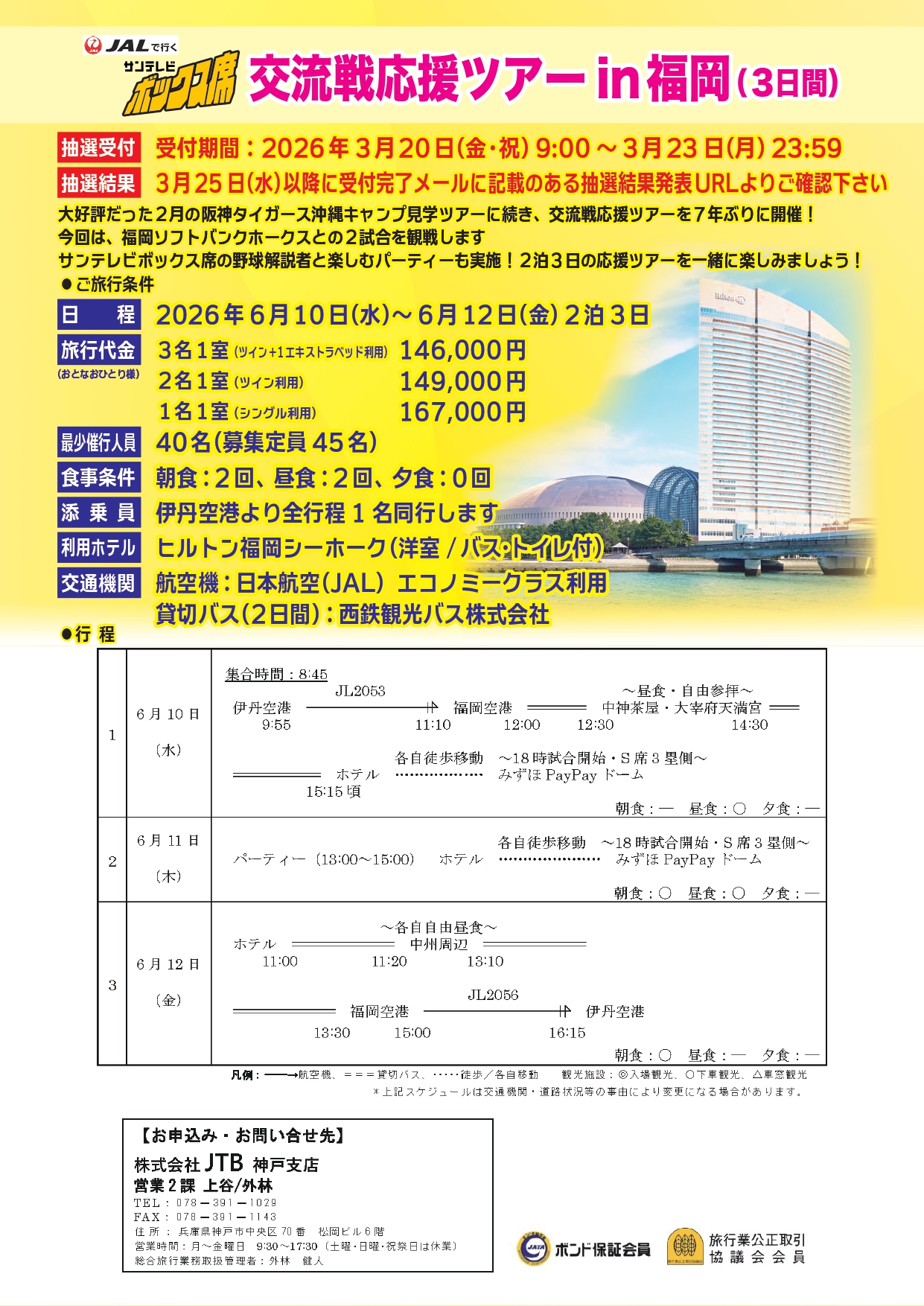 JALで行く サンテレビボックス席交流戦応援ツアー in 福岡