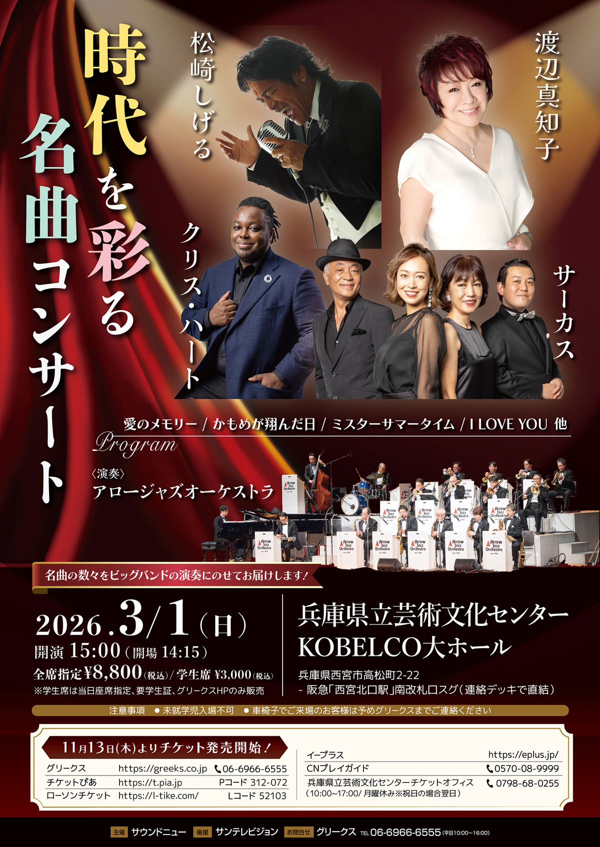 神戸国際会館プレイガイド TEL.078-230-3300 (平日10:00~18:00(火曜定休)) |