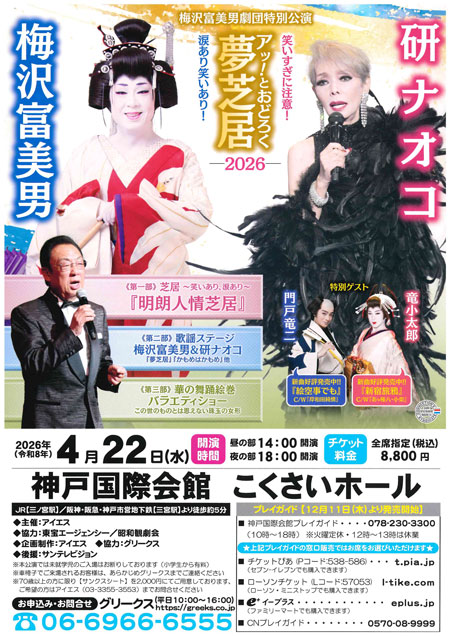 神戸国際会館プレイガイド TEL.078-230-3300 (平日10:00~18:00(火曜定休、12:00~13:00休業)) |