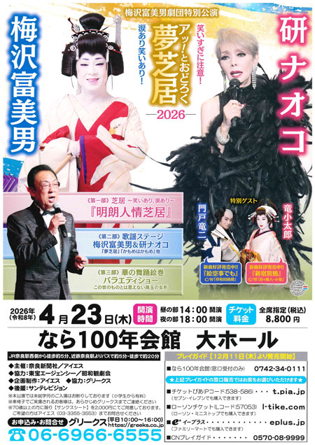 ワールド・ドリームサーカス橿原公演事務局 TEL.0744-22-1911 【12/25(木)まで】平日10:00〜17:00 【12/26(金)以降】公演開始時刻の1時間前~最終公演終了時刻の30分後[休演日/水曜] |