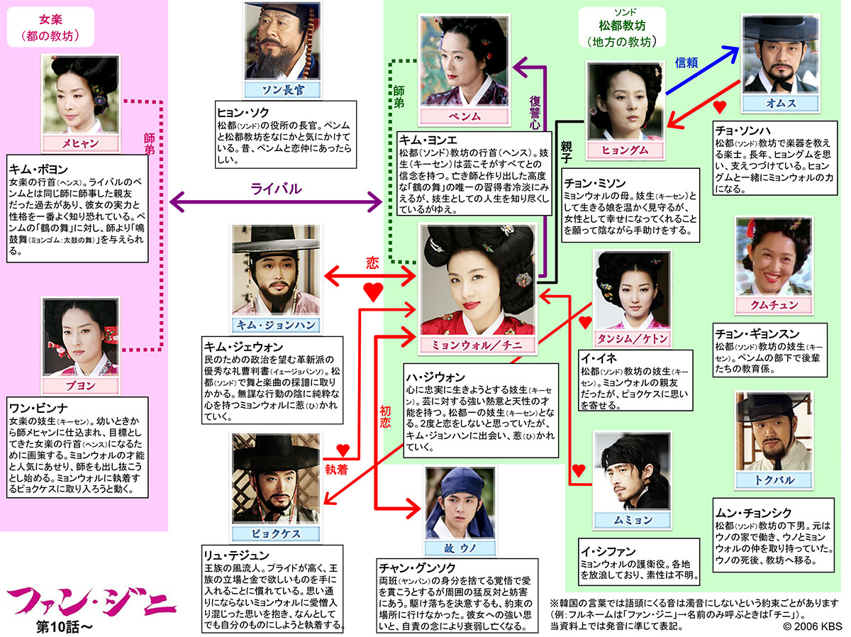 厳しい師匠との確執、ライバルの妓生との競い合い、そして、チニに思いを寄せる男たちとの悲恋・・・。苦しみの中で、チニは、真の芸の道を究めていく・・・・。