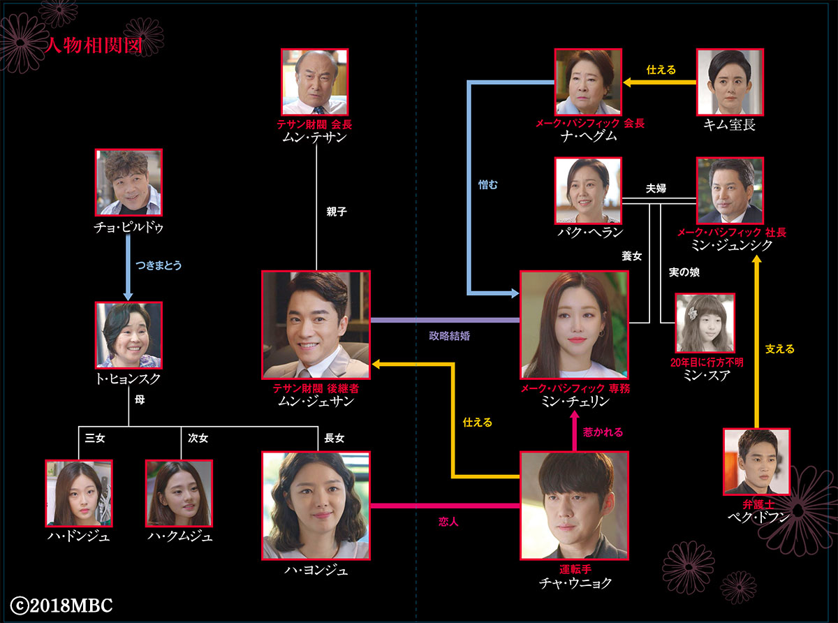 大手化粧品会社、メーク・パシフィック社のミン・チェリンは、ヒット商品を生み出す敏腕専務。しかしチェリンには秘密がある。幼い頃、パシフィック社の創業者ナ・ヘグムによって、ヘグムの孫ミン・スアの厄を移す儀式のために連れて来られたのだ。そして20年前にスアが行方不明になると、ヘグムに疎まれながらもミン家の実子として育てられた。一方、パシフィック社の訪問販売員ハ・ヨンジュは、恋人との結婚も秒読み段階だったが…。