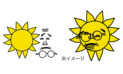 おっ!サンの顔パーツを自由に組み合わせて、ユニークな表情を作ろう!できあがった顔は撮影して、ぜひSNSに投稿してみてください。