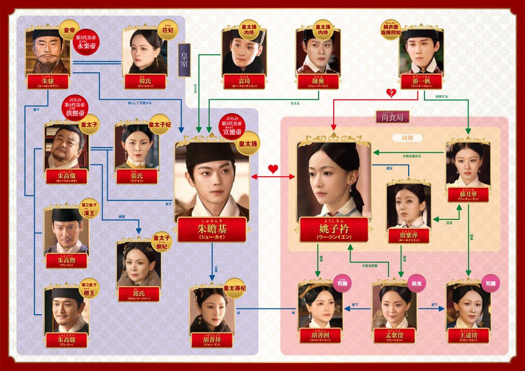 明・永楽帝の時代。絶え間なく訪れる使節団をもてなすため、宮中の食事を担う尚食局では新たなる掌膳選びが行われていた。尚食局の厨師になることを願う姚子衿は、持ち前の才能を発揮して見事首位に選ばれるが、厳しい司膳からは認められず、下っ端として尚食局入りする。そんなある日、先輩女官に頼まれて、幼い頃から密かに憧れている皇太孫・朱瞻基の書斎に食事を届けることになった姚子衿。彼女の料理の腕前と気遣いに心惹かれた朱瞻基は、度々書斎へ料理を運ばせ、距離を縮めていく。朱瞻基はどんなときも真っ直ぐに想いを伝えるが、姚子衿には秘められた過去があり…?