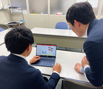 帰社後、社内にて担当案件の事務作業をします。先輩社員から資料作成のアドバイス、提案内容の相談をします。