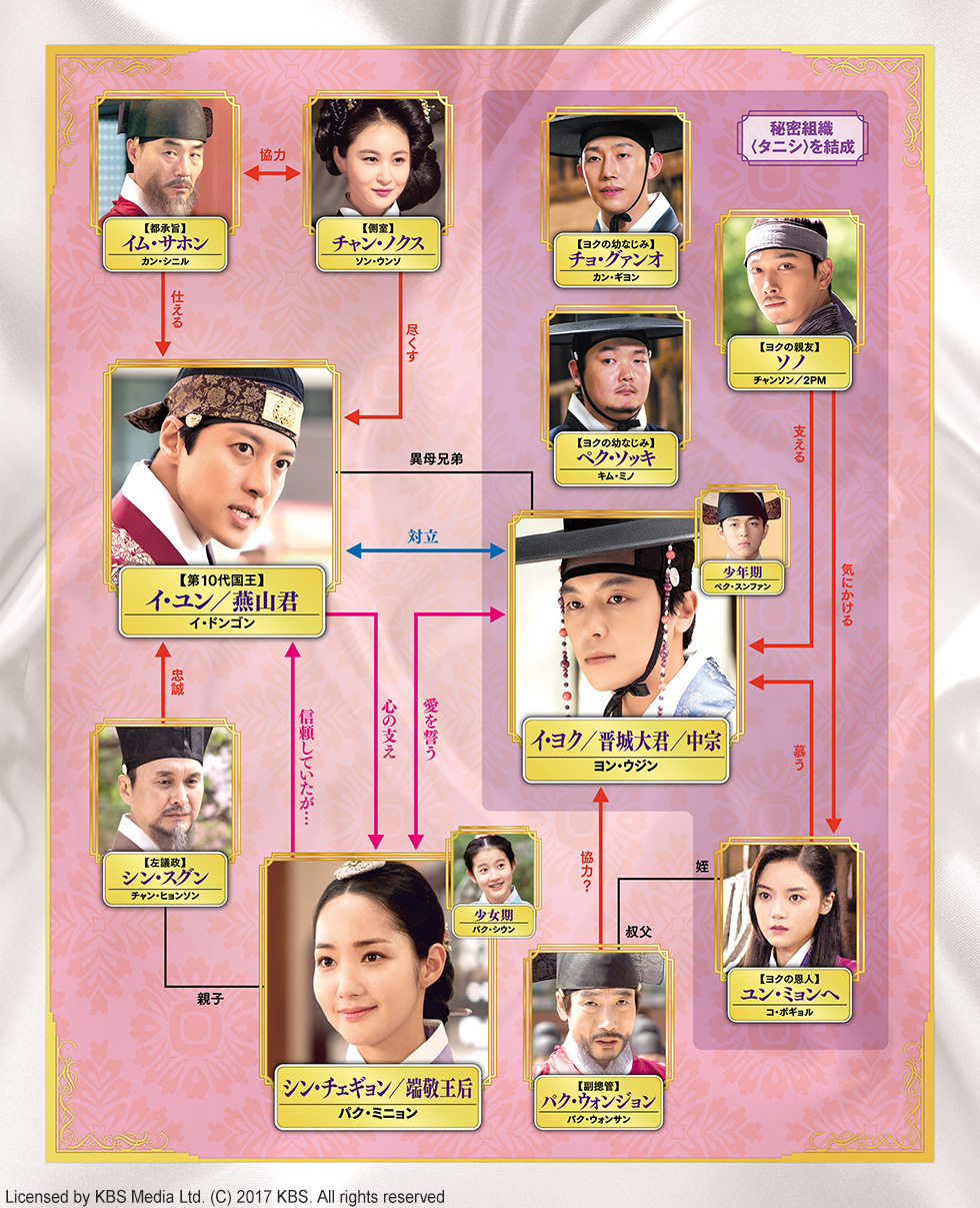後日、婚姻相手として再会した二人は徐々に心を通わせていく。一方、ヨクの兄・燕山君は物怖じしないチェギョンに、淡い恋心を抱き始めていた。