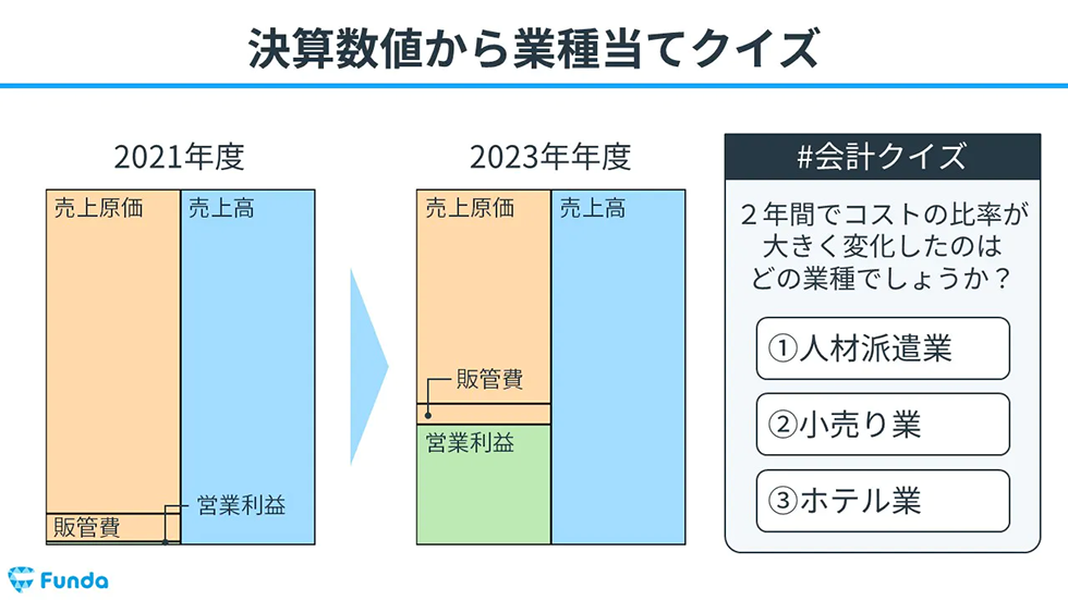 会計クイズを解いていく事で、ビジネスモデルの理解や財務諸表の読み方が身に付いていきます。
