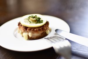 - クロスホテル大阪で提供される「牛カツレツのコルドンブルー風」