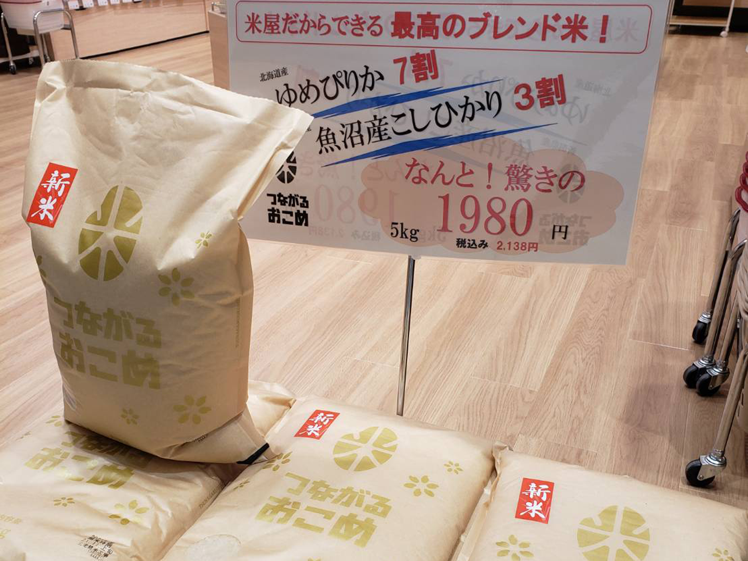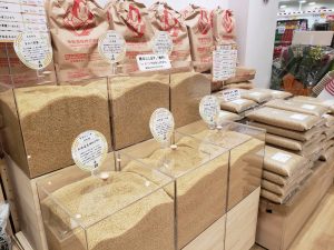 近年人気銘柄である「北海道産ゆめぴりか」と王道ブランドである「魚沼産こしひかり」の贅沢なブレンド米が販売されているほか、全国の有名ブランド米を店頭で好きな量だけ精米して持ち帰ることが可能です。