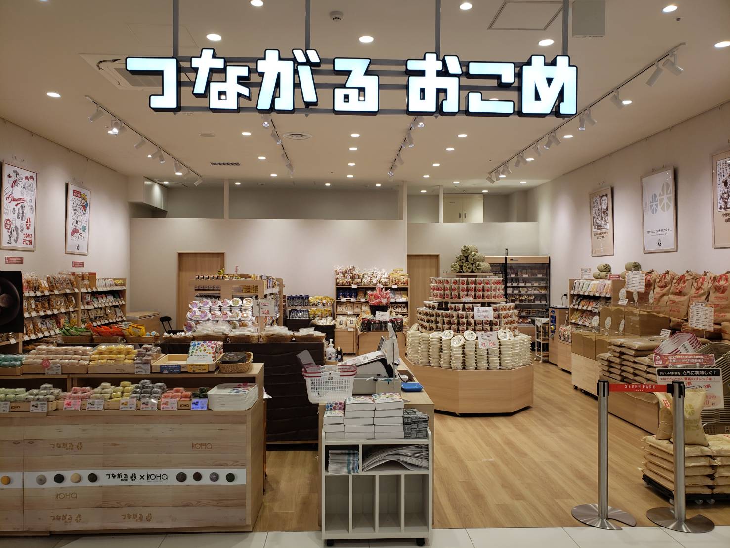 お米の消費量が1962年をピークに半減しているなか、より多くの人にお米の魅力を再発見してもらうことを目的にオープンした「つながるおこめ」。お店のコンセプトは店舗名にもある「お米からつながる。」で、お米に関する様々な商品やディスプレイなど、お米の楽しさや美味しさの魅力が伝わるお店となっています。