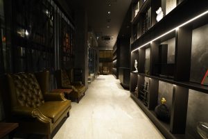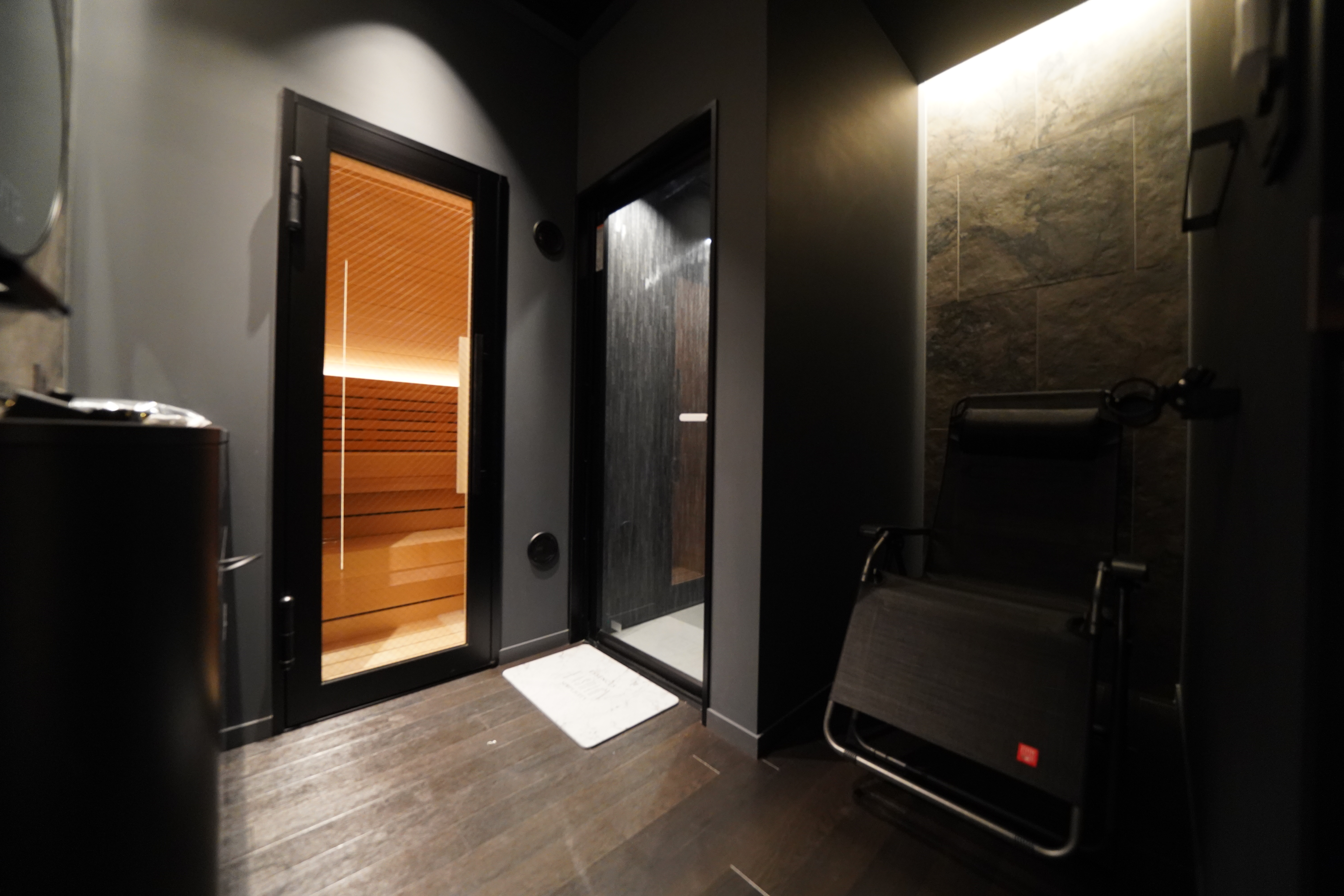 茶屋町エリアはファッションやグルメに加え、男性向けのサロンが数多く立ち並ぶエリアです。既存のサウナ施設とは一線を画したラグジュアリーな空間は、美意識の高い男性が集まるエリアの需要に応えたもので、オーダーメイドの個室や15度の冷水を安定供給するシャワーシステム、高級ブランドのような内外装にもこだわり、総工費は1億5,000万円。 プライベート空間にこだわり、入口から出口までを一方通行にすることで人に接触しにくい導線も確保されています。2時間で30万円の貸し切りコースも用意されています。