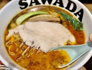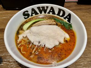 これまでにも系列店の「中国菜 エスサワダ」や「中華バル サワダ」では、鶏ガラスープとゴマペーストを使った正統派の担々麺を提供、昨年オープンの「大阪中華サワダ飯店」でも、サバ節を加え、和風だし×四川料理を融合させた担々麺を提供していましたが、今回、専門店の立ち上げに当たり、製麺やスープの仕込みを学び直すなど、進化系担々麺の開発に気概とあふれる情熱を注ぎこみました。