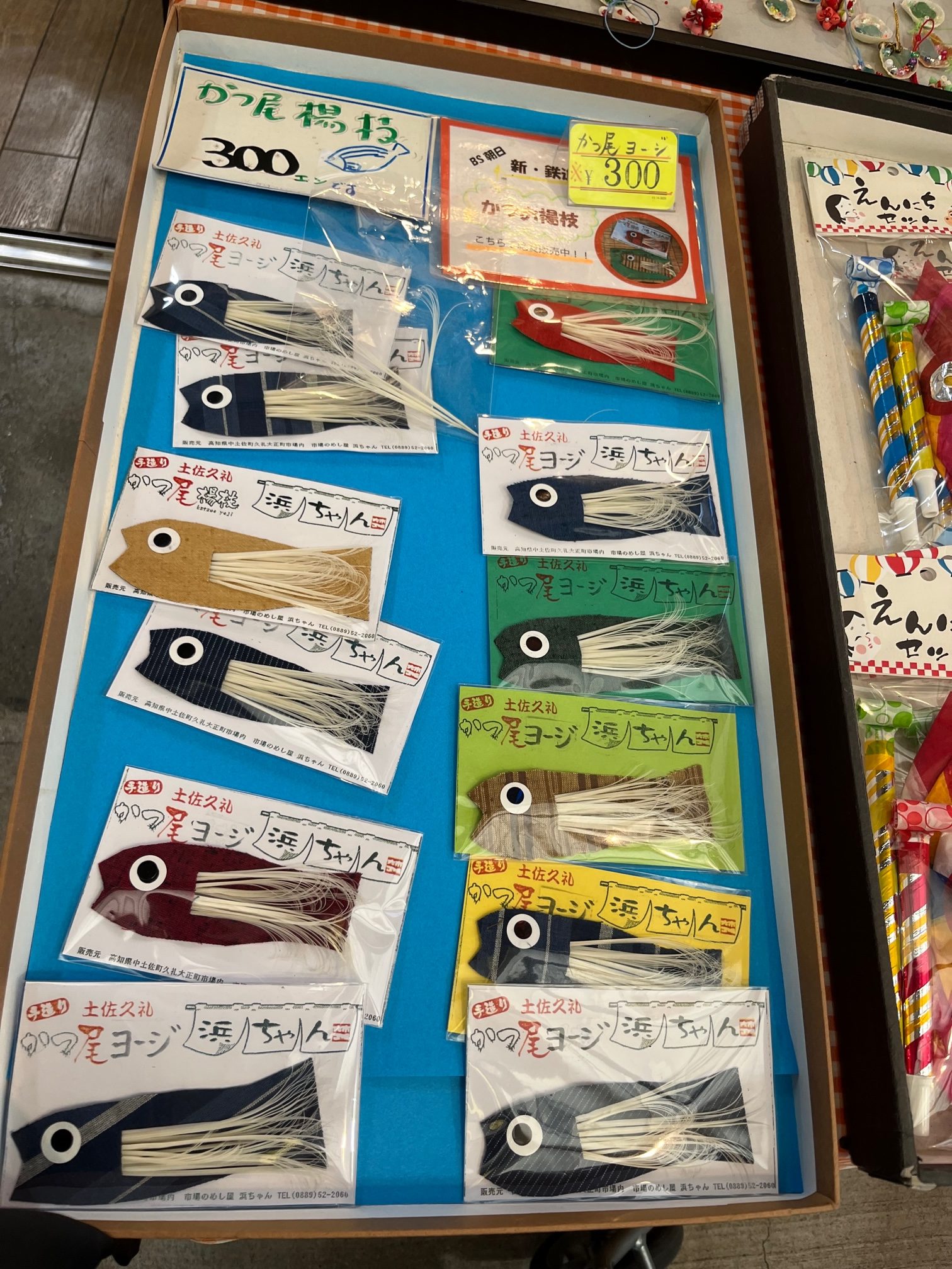 雑貨店には、カツオの尾びれを湯がいて爪楊枝にした「かつ尾ヨージ」まで。カツオの命、恵みを余すことなく活用しています。