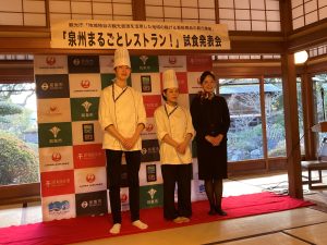 日本航空株式会社(以下「JAL」)と学校法人村川学園が、大阪府岸和田市・和泉市・泉南市の3市と連携し、地域活性化の取り組みとして、観光庁「地域独自の観光資源を活用した地域の稼げる看板商品の創出事業」を活用し、泉州のご当地看板メニューを開発し、15日、報道関係者に披露されました。