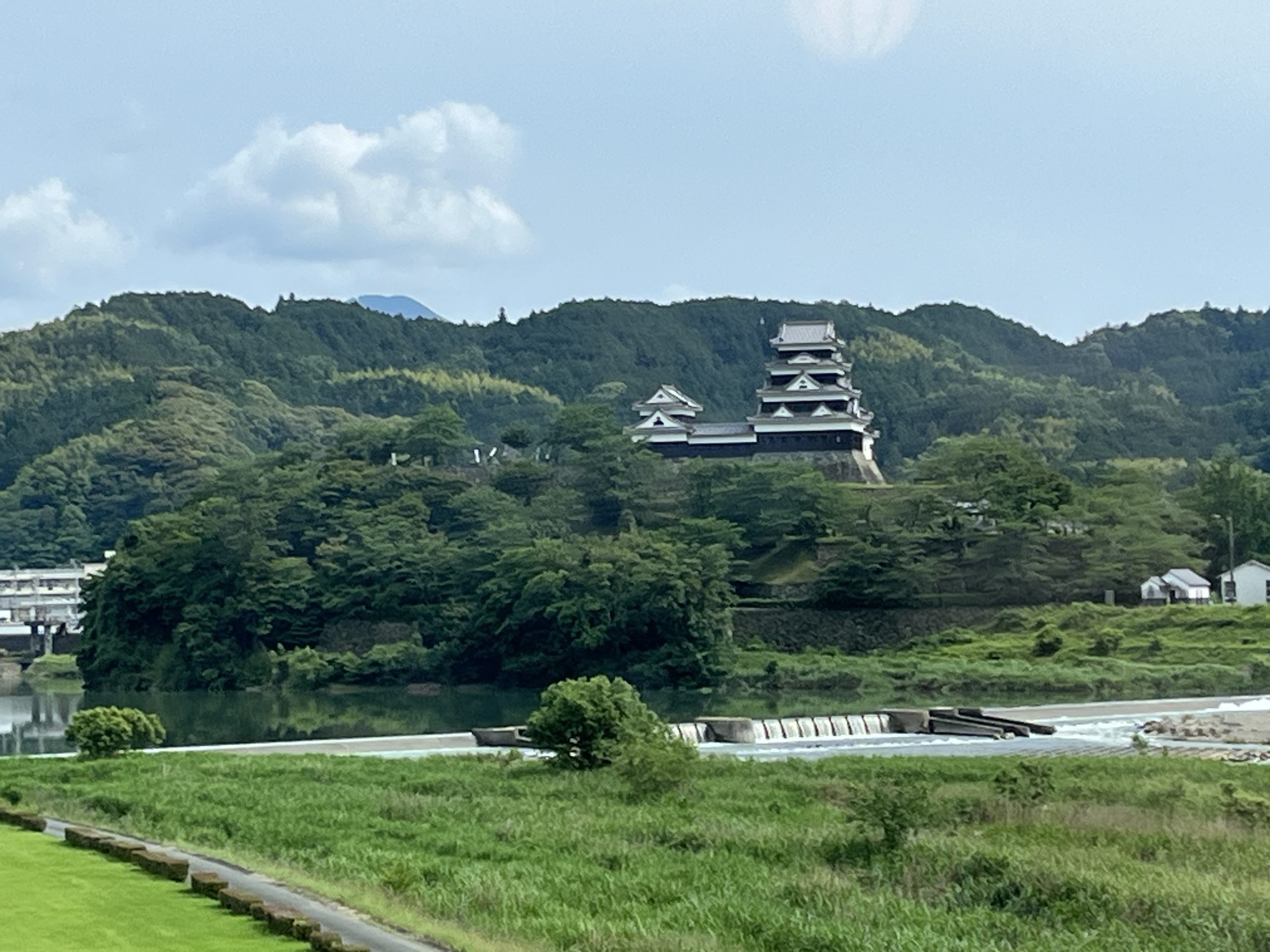 大洲市のシンボル・大洲城 ここからも幟を振って列車を歓迎