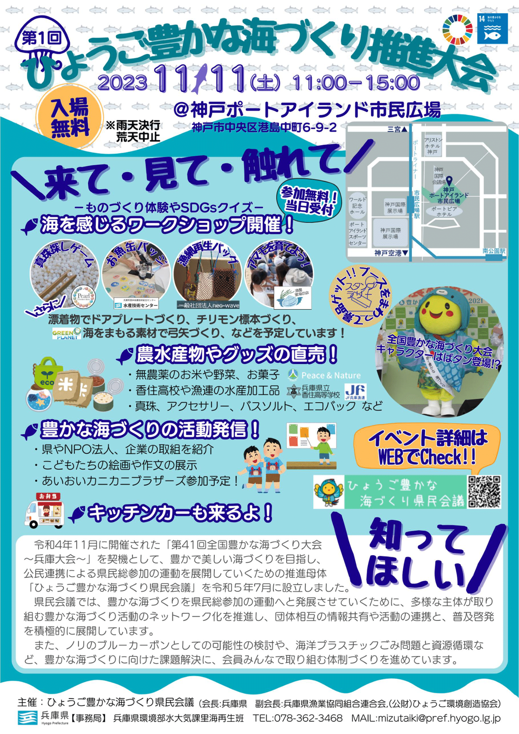 その一環として、この度、11月11日(土)に市民広場にて、お子様から大人まで楽しむことができるイベント「ひょうご豊かな海づくり推進大会」が開催されます!