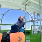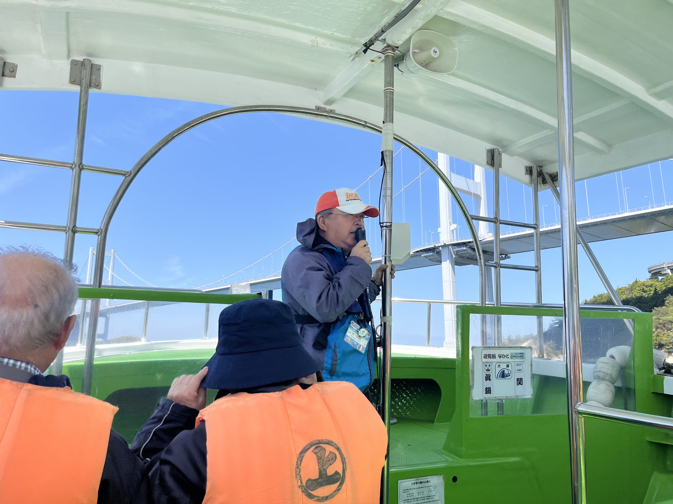 そんな急流を間近で体感できるのが、急流観潮船です。海風に備えて、コートを羽織りライフジャケットを装着して、いざ乗船。