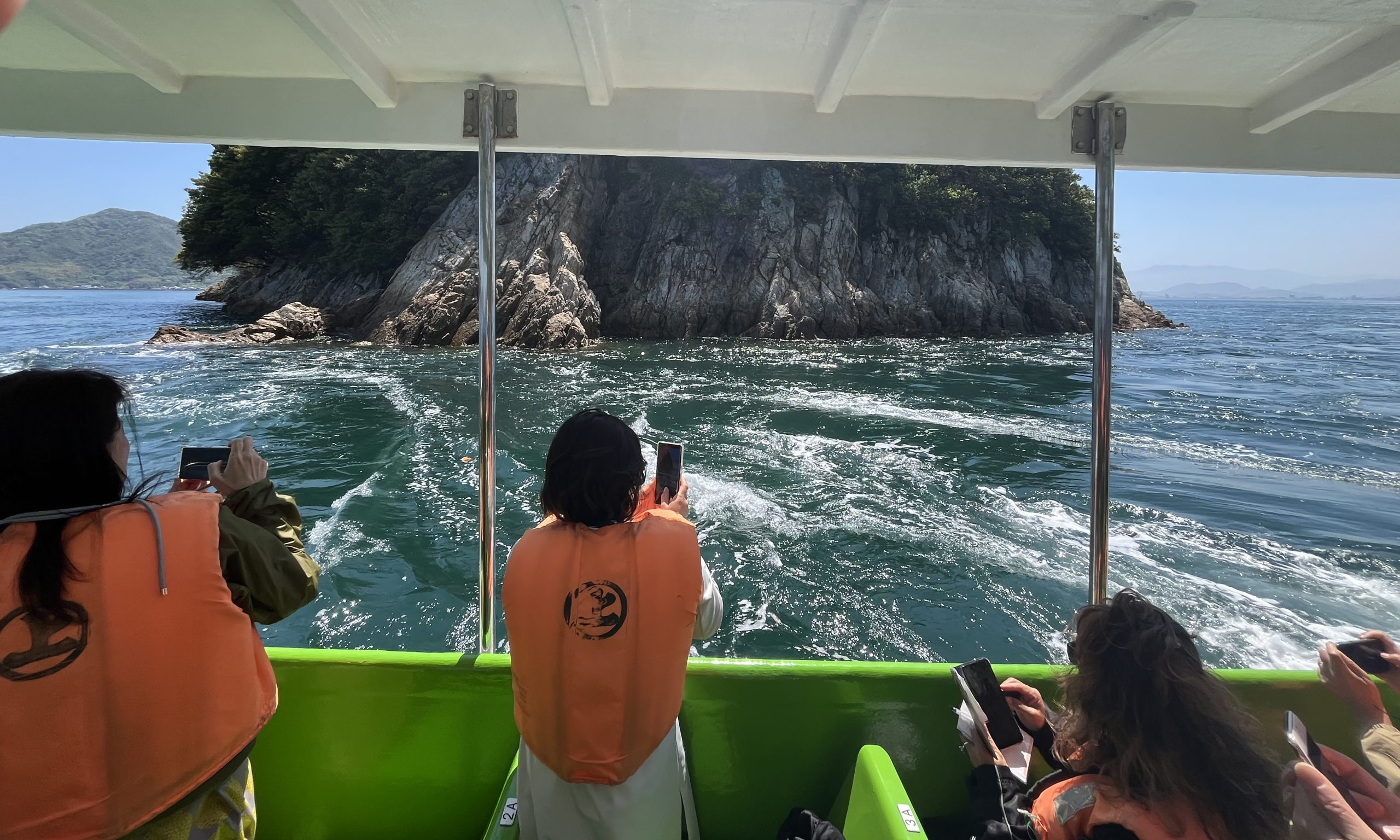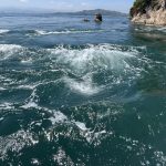 ダイナミックな潮流に船は翻弄されながらもスリル満点の体験ができます。
