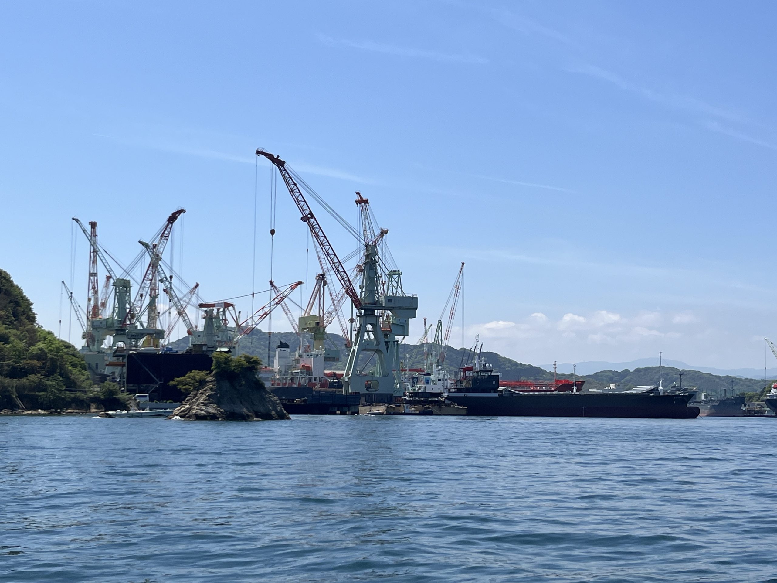 ドックやクレーン、そして建造中の船舶が立ち並び、まさに海事都市今治の心臓部を感じることができます。