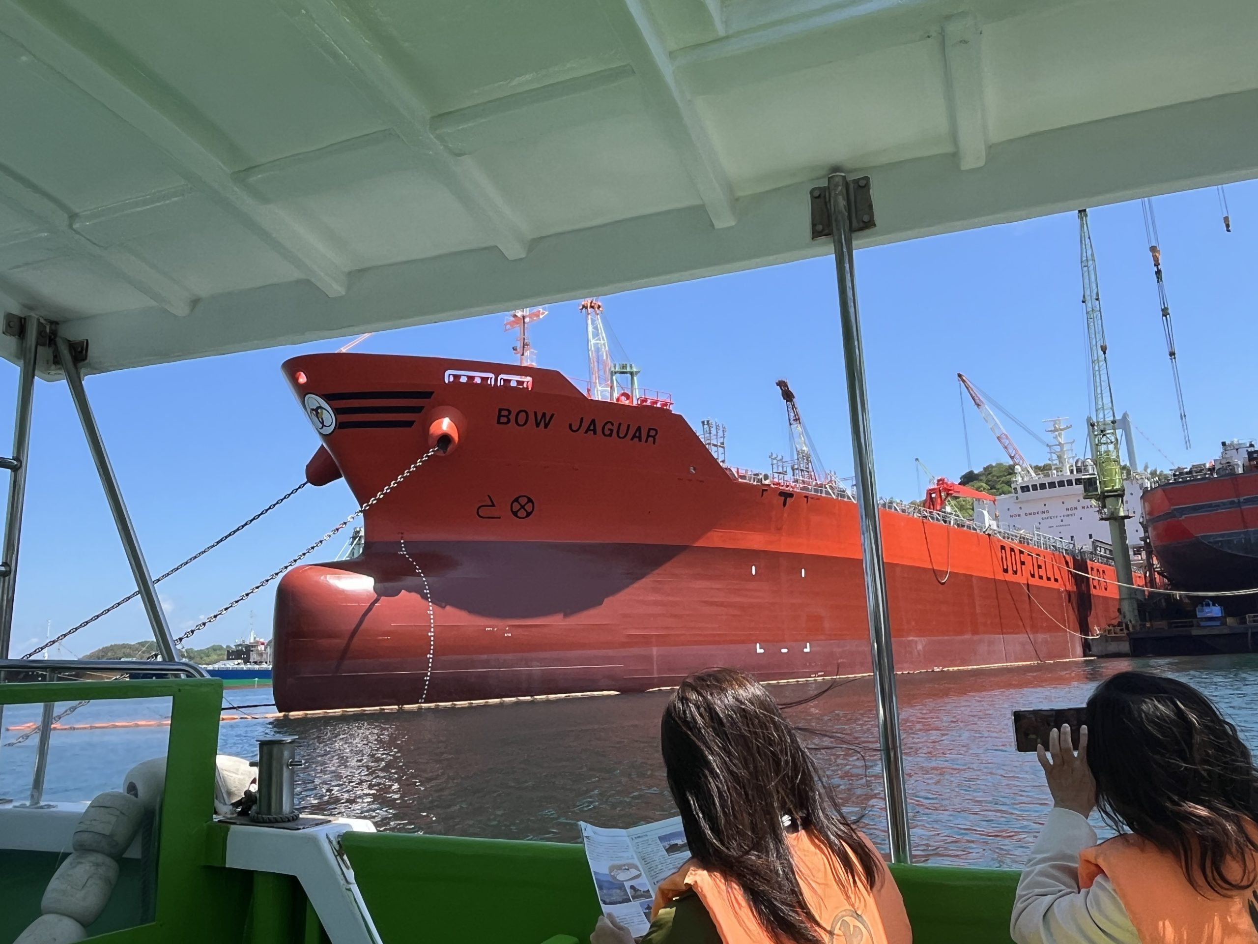 船上から眺める巨大な造船所群も見どころの一つ。