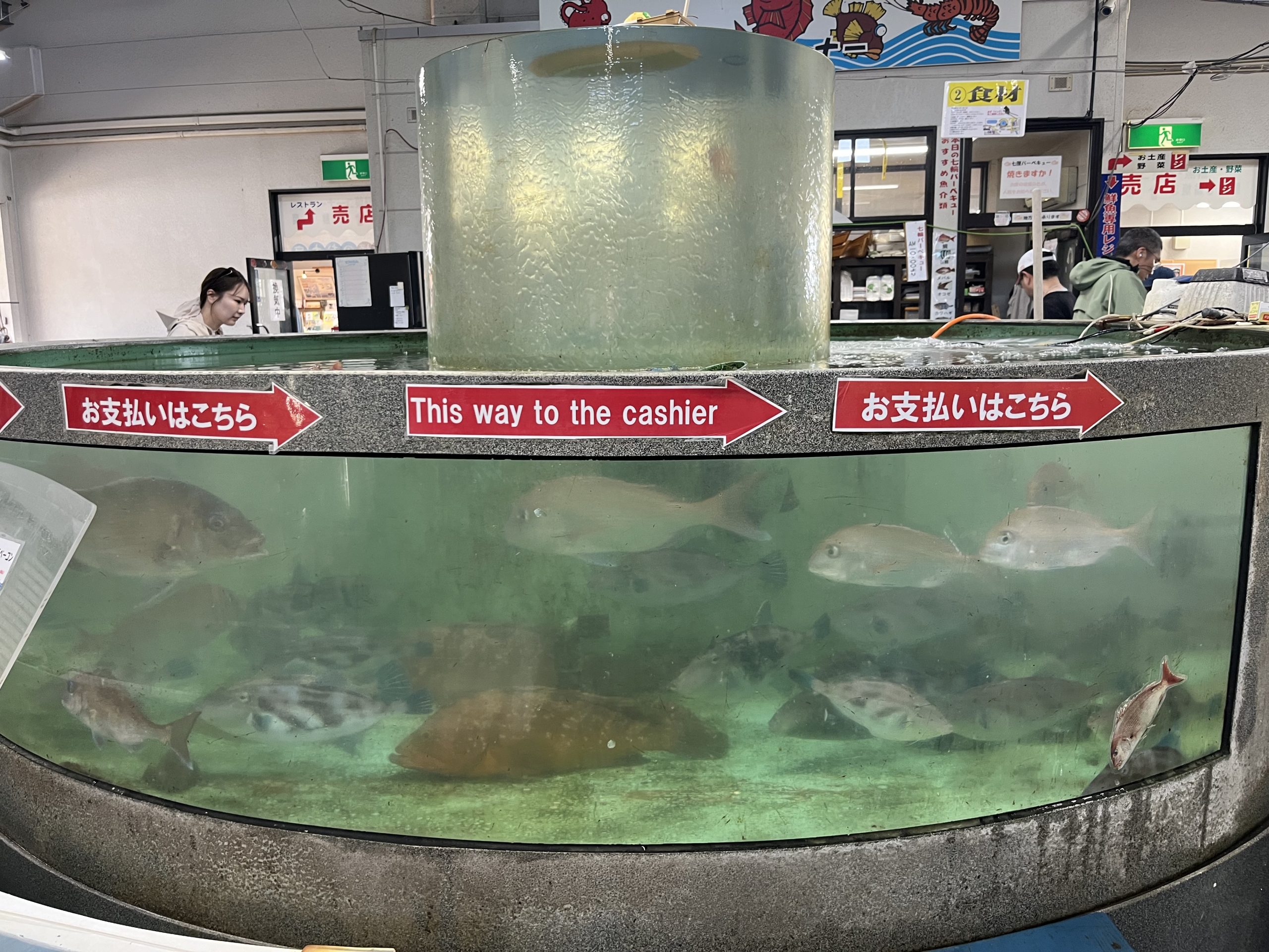 - 水槽には魚が泳ぎ