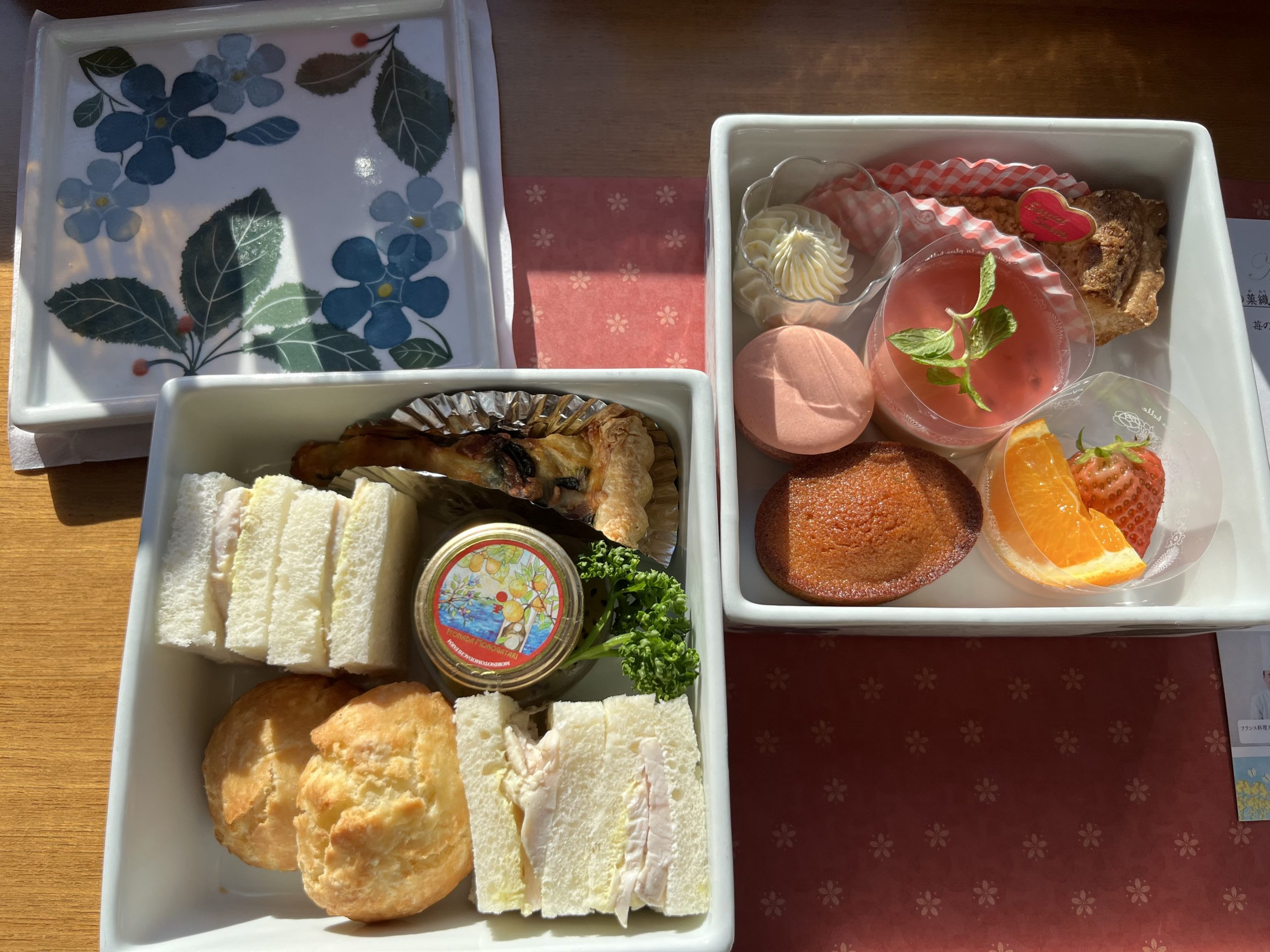 車内で味わったのは松山でパンとお菓子が有名な「Petit Paris」のアフタヌーンティーセット。