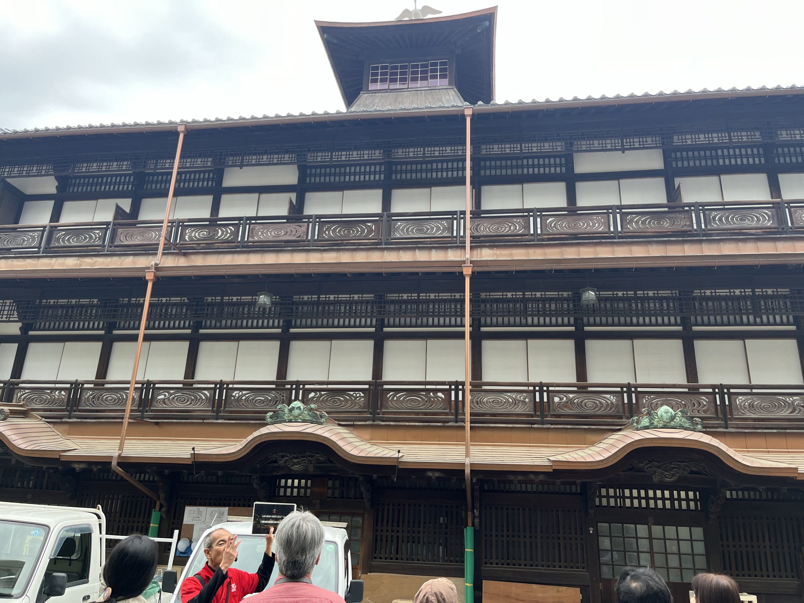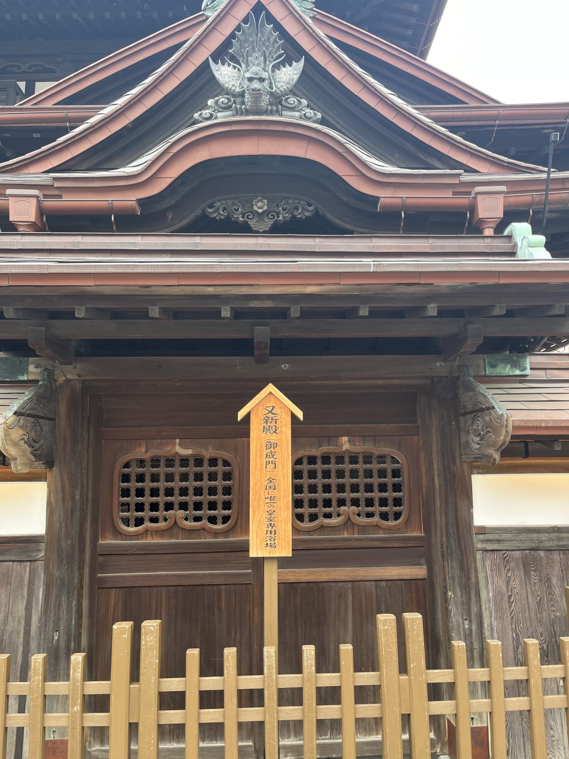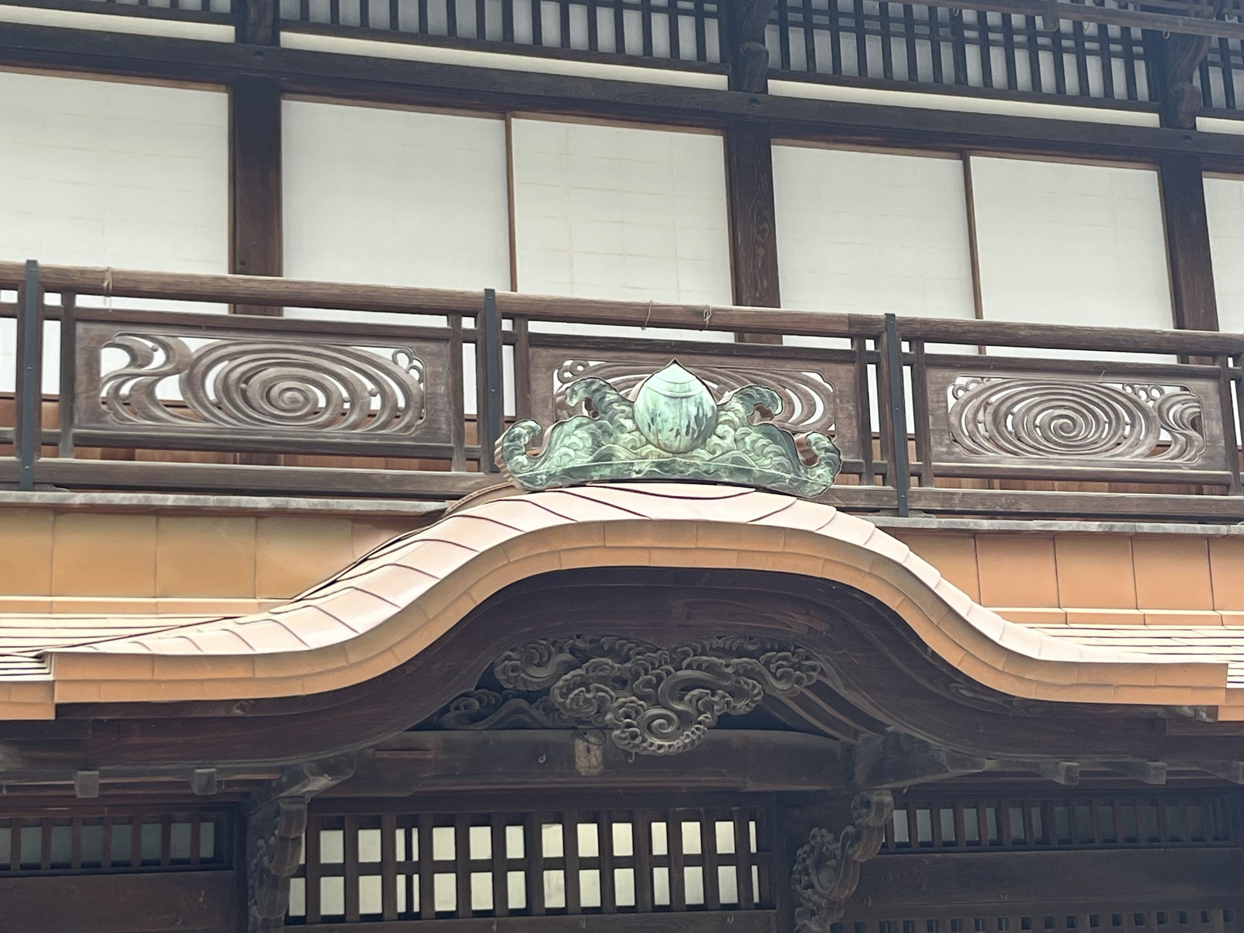 道後温泉本館は、木造3層構造で、屋根、木造の格子が印象的な外観は、明治に建てられた当時の姿をよく残しています。