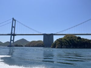 1999年に5月1日に開通した世界初の三連吊橋として知られるこの橋は、愛媛県今治市と大島を結ぶ全長4176メートル、高さ149.9メートルと、圧倒的なスケールを誇りしまなみ海道の中でも最も長い橋梁として知られています。