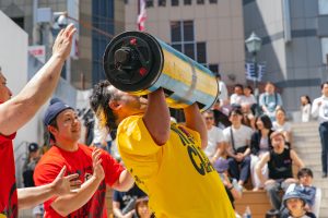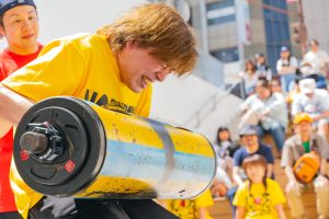 2024年5月25日(土)、三宮プラッツで兵庫県初の怪力を競うエクストリームスポーツ、ストロングマン競技の初心者大会「呑兵衛クラシックノービス大会」が開催されました。海外からの参加者を含む男女26名が100kgを超える重さを持ち上げる、運ぶ、押すなど3種目を競いました。
