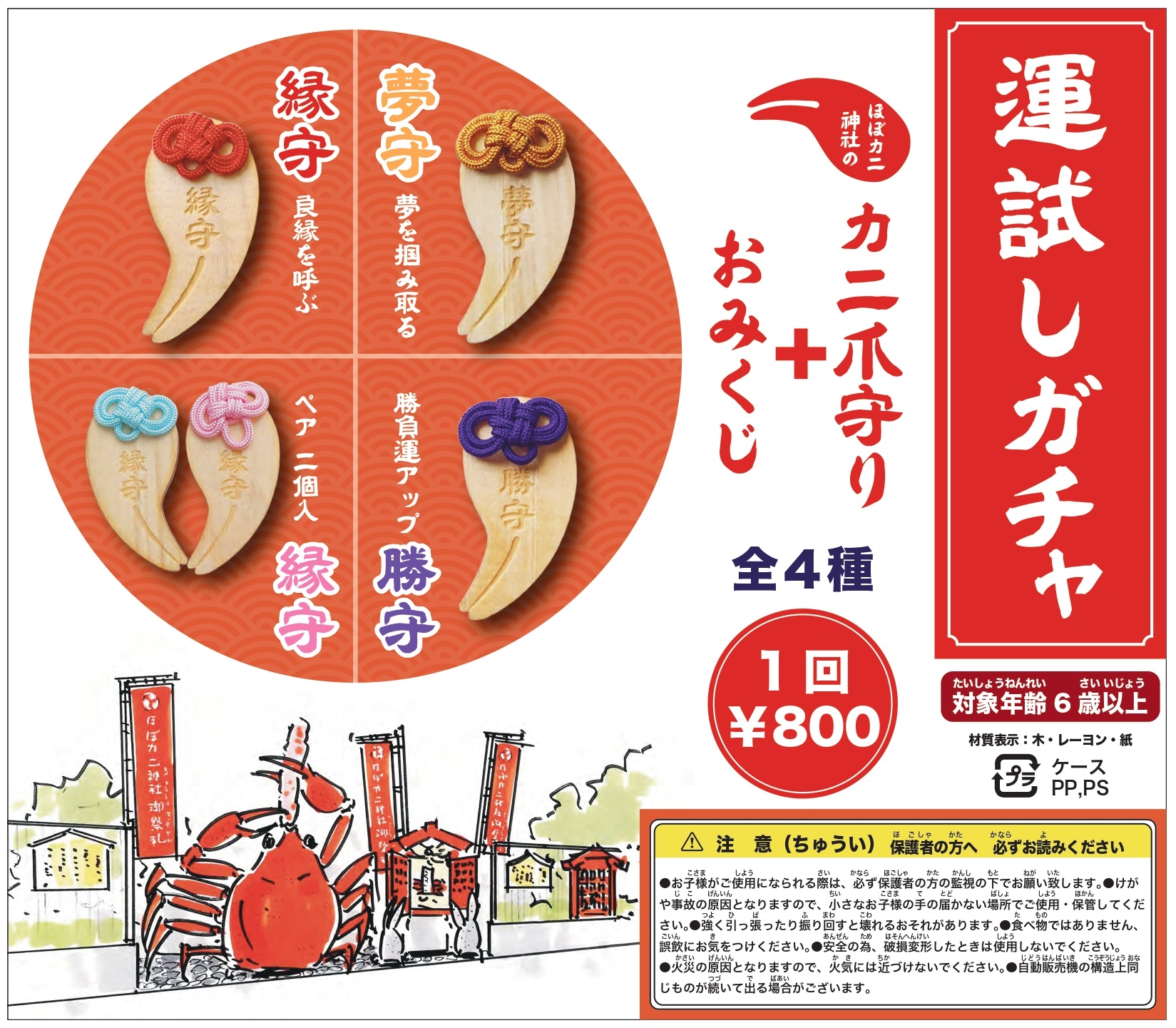 名称:おみくじ付きほぼカニ爪御守 4種(価格:800円(税込) ※電子決済のみ対応)