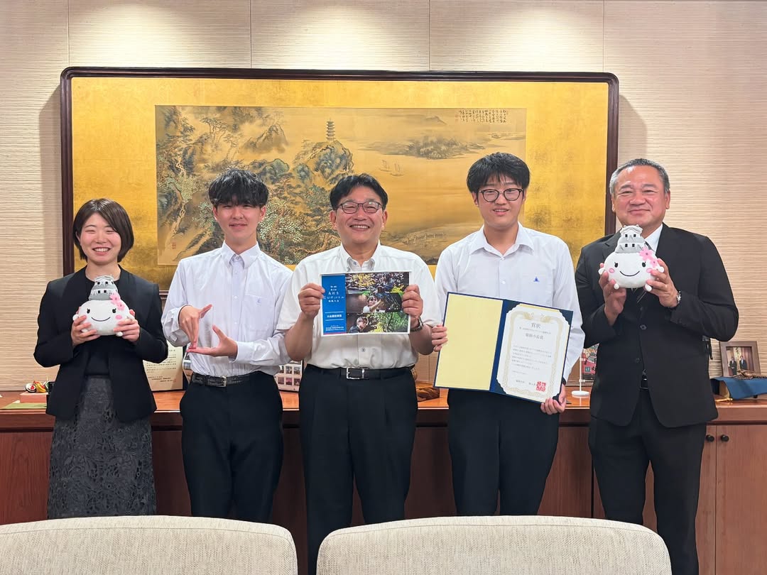 また、7月10日には賞の受賞を記念して、姫路市立姫路高等学校のチーム「はなだん」の2人が姫路市の清元市長の元を訪れ、大会当日の様子や、作品に込めた思いなどを楽しく対談しました。