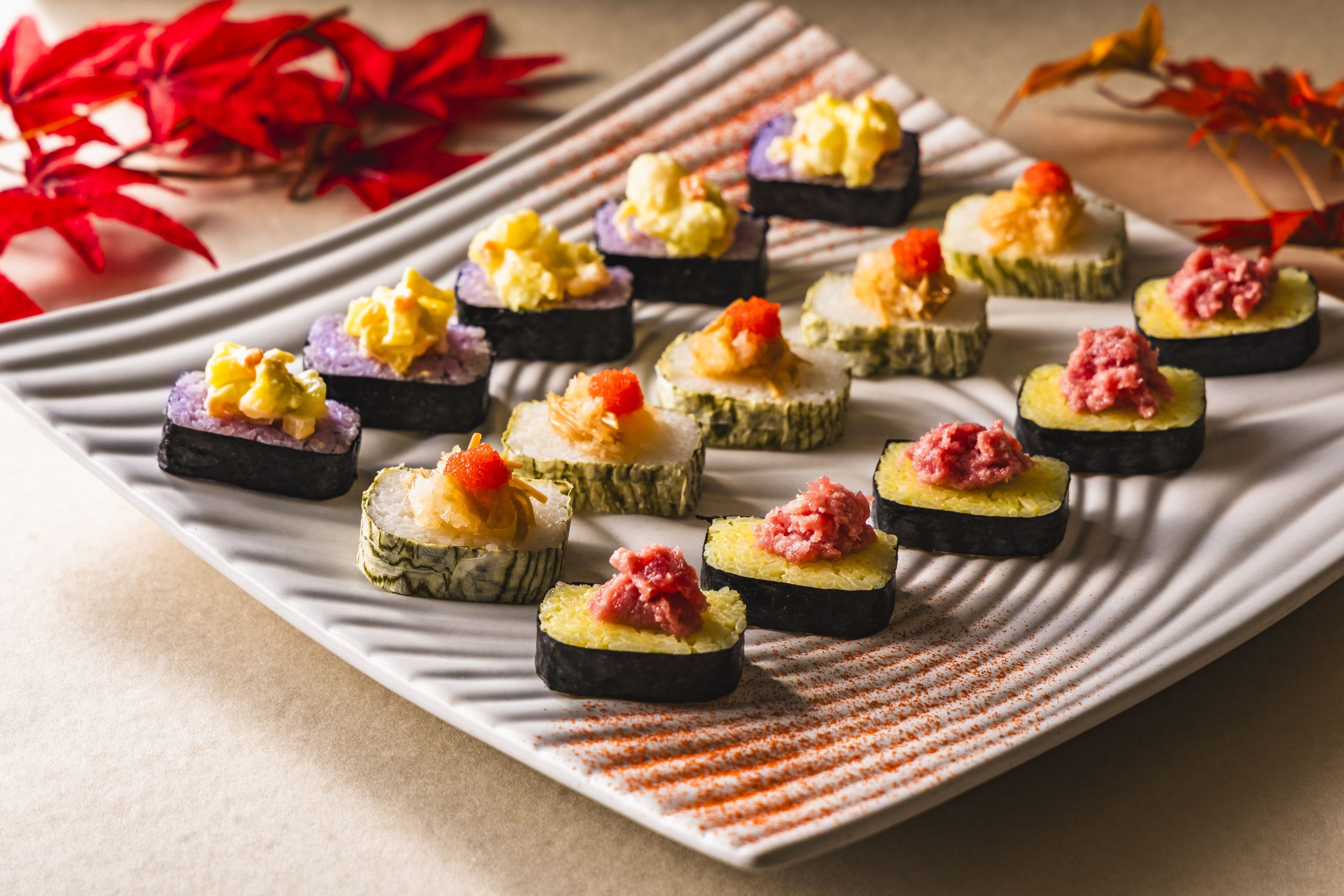 「ネン」のコンセプトである“美味しい野菜”を楽しむ10種のカラフルオードブルは、お好みのディップとともに「ブルスケッタ」にアレンジもおすすめ。さらに、鮪のたたき×柴漬けや沢庵×ポテトサラダなど、食材の組み合わせを楽しむ「野菜の巻き寿司」も登場!
