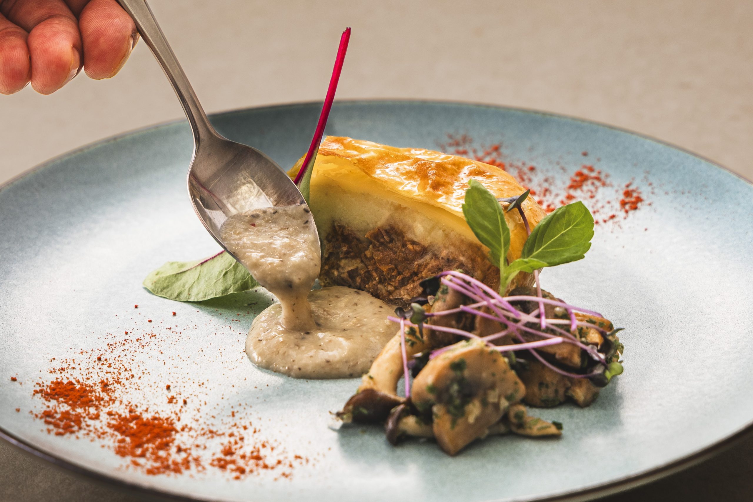 「ネン」ではトリュフ風味の茸ソースで味わう牛肉のパイ包み焼きなどが用意されています。