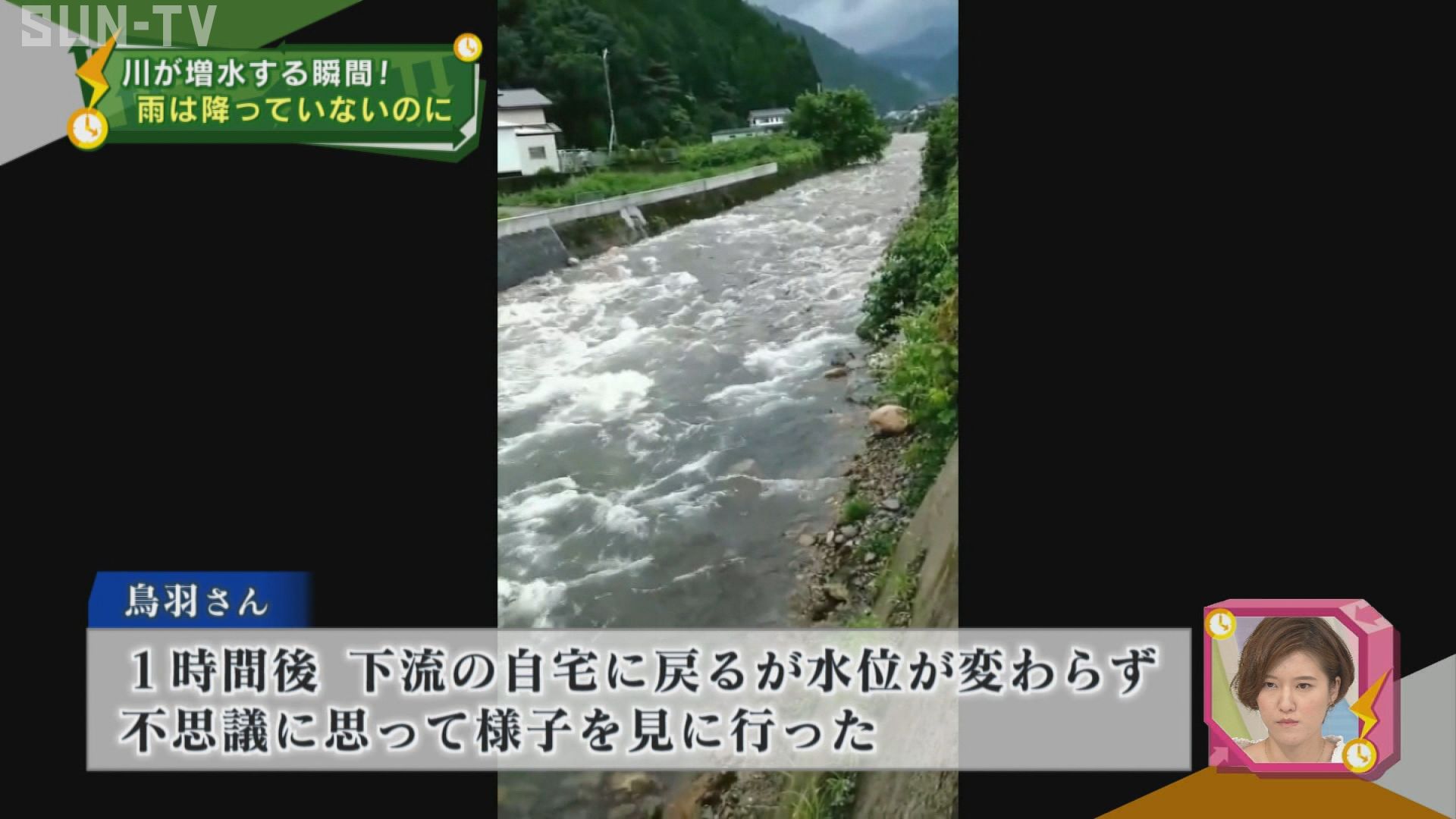 川の水位が変わらないことを不思議に思い、様子を見に行ったところ増水の瞬間に立ち会いました。
