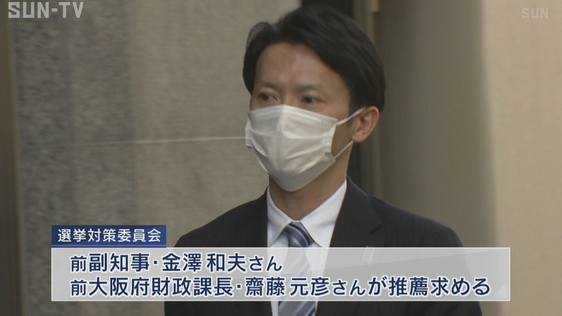 自民党県連の選挙対策委員会は7日午後3時から始まり、前副知事の金澤和夫さんと、前大阪府財政課長の齋藤元彦さんがそれぞれ推薦を求めました。