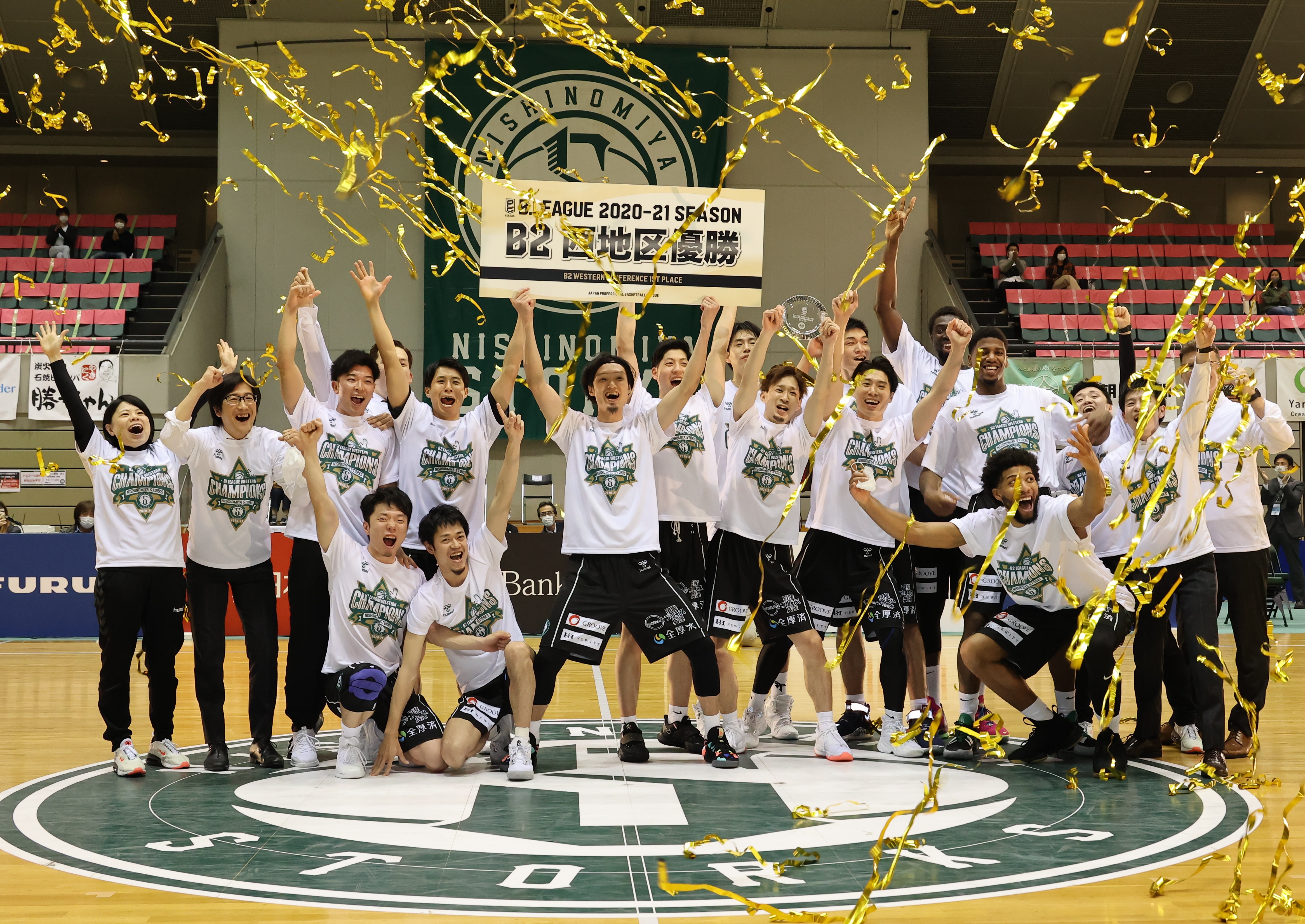 地区優勝を喜ぶ西宮ストークス/4月17日 (C)B.LEAGUE