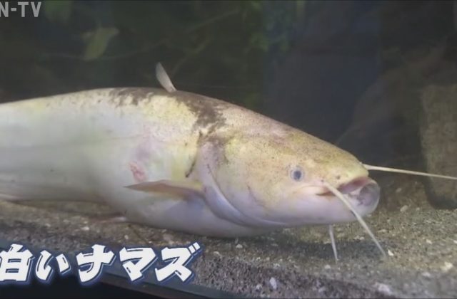 豊岡市の城崎マリンワールドで、農業用水路で捕獲された白いナマズが公開されています。