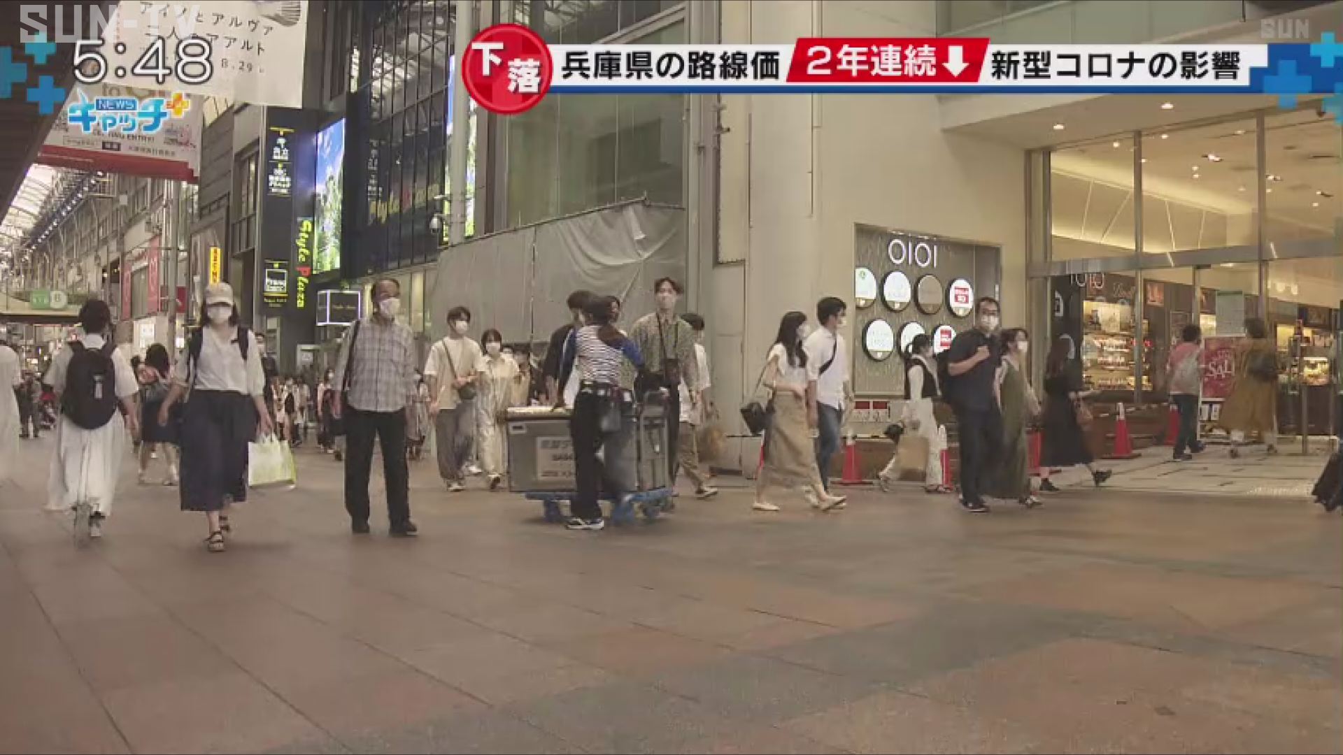 路線価は主要道路に面した土地1平方メートルあたりの評価額で、8年ぶりに近畿2府4県すべてで平均値が下落し、このうち、兵庫県は去年と比べて0.8%下がりました。