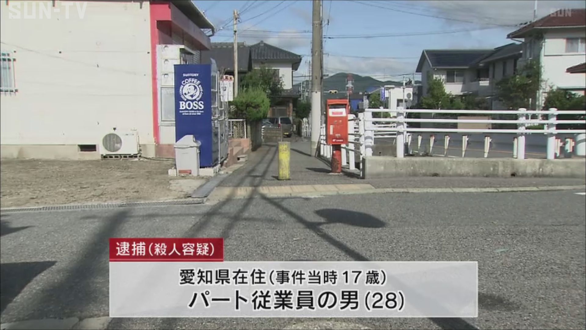 殺人の疑いで逮捕されたのは事件当時17歳だった愛知県に住む28歳のパート従業員の男です。 警察によりますと男は事件当時、現場近くに住んでいた可能性があるということです。 警察は今後の捜査に影響があるとして容疑者の認否を明らかにしていません。