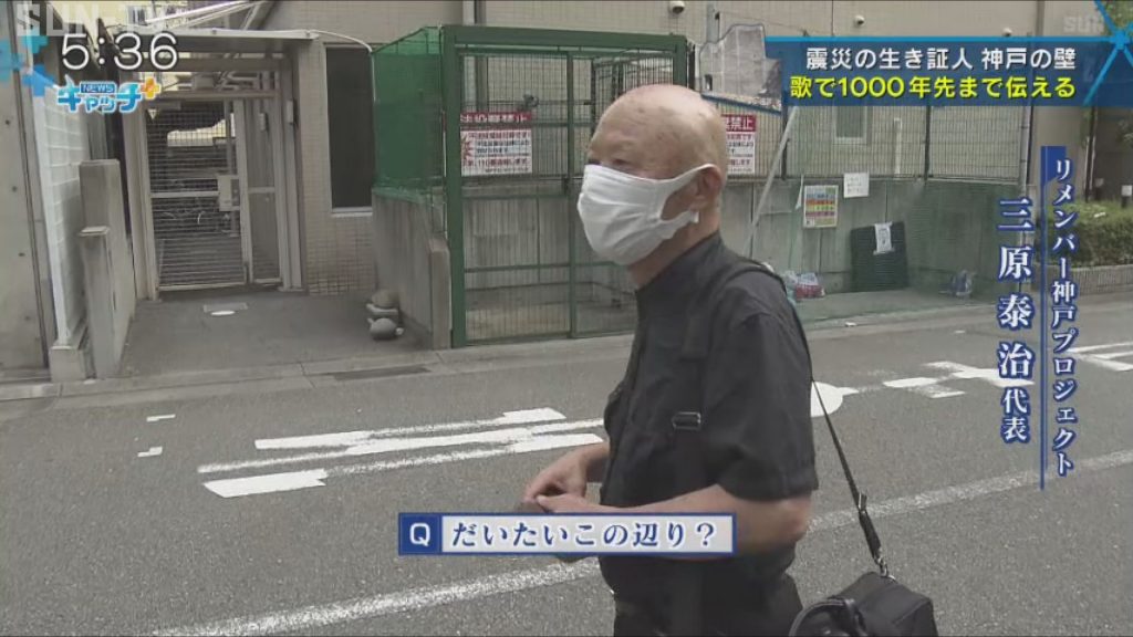 現代美術家の三原泰治さん。新長田には、震災とアメリカ軍の空襲から焼け残った防火壁(1927年ごろ建設)があり、三原さんは26年間、保存と継承活動を行ってきました。