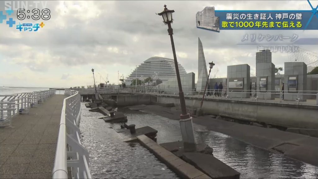 「見て触れて未来へ進んでください。リメンバーリメンバー神戸の壁」